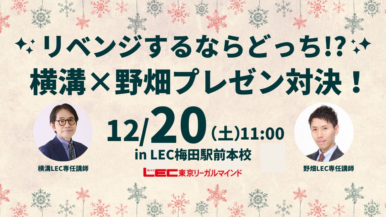 【動画】リベンジするならどっち!?横溝×野畑プレゼン対決!~2025年度本試験から見えてくる最適なリベンジプランとは?