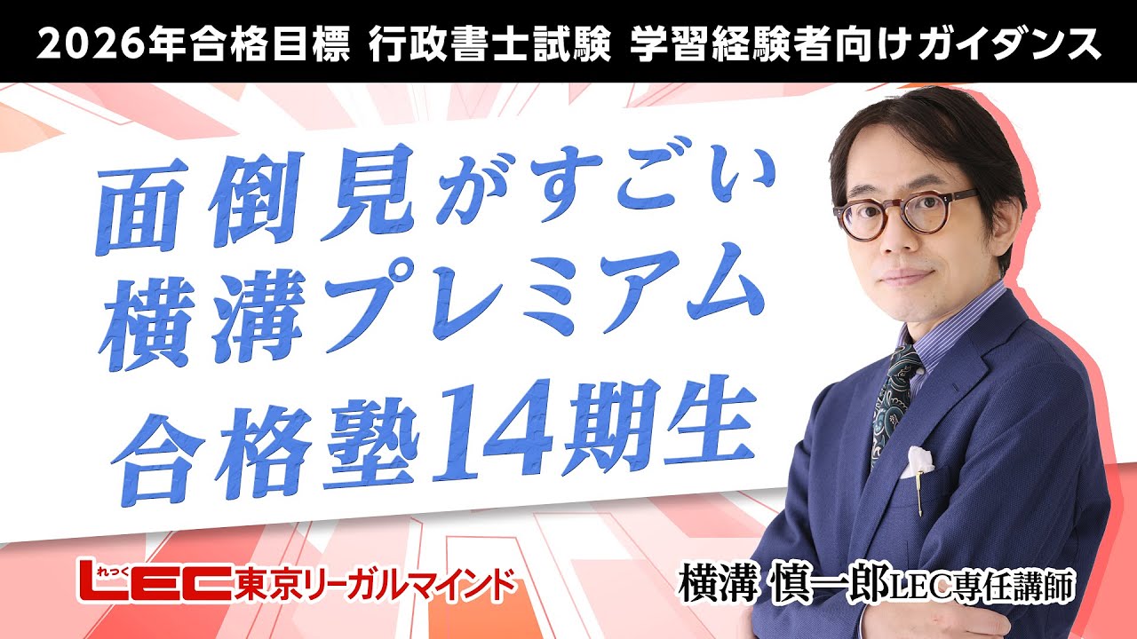 【ガイダンス動画】2026年合格目標行政書士 「合格者も納得!圧倒的合格を勝ち取る横溝プレミアム合格塾」